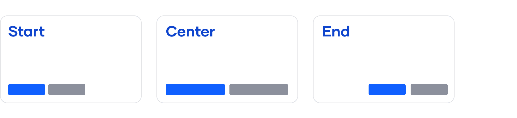 Alignment refers to how buttons and actions are aligned relative to the container or page. When combined with different reading patterns and hierarchy, different alignment methods impact a function's readability, usability, and intended outcome.